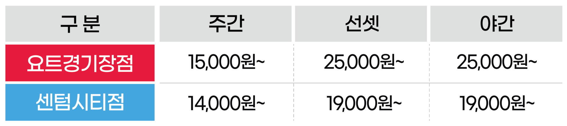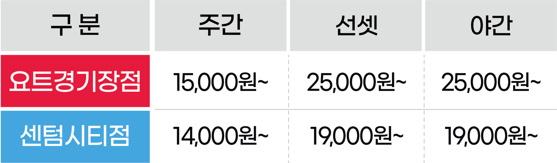 ※자세한 요금은 각 지점에서 확인 부탁드립니다.
